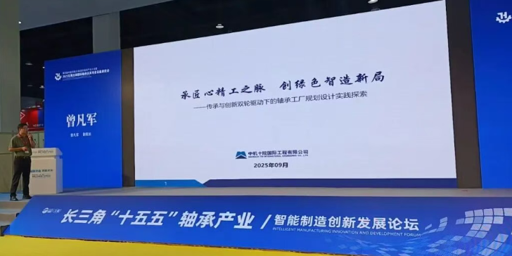 本次博览会以“赋能产业升级·共绘智造新篇”为方向,聚焦轴承、泵阀、弹簧线材三大工业关键基础件,中机十院重点展示了相关领域高端、智能和绿色工厂建设的特色服务和独特优势。博览会期间,还举办了长三角“十五五”轴承产业/智能制造创新发展论坛,中机十院工业院副院长曾凡军做了题为《承匠心精工之脉 创绿色智造新局——传承与创新双轮驱动下的轴承工厂规划设计实践探索》的报告,为长三角轴承产业智能制造创新发展注入十院力量。
